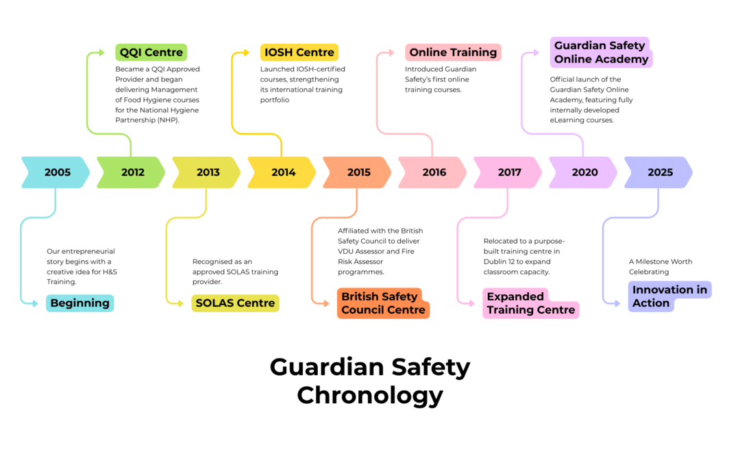 Guardian Safety Training offers comprehensive health and safety training solutions across Ireland. We specialise in providing QQI-certified courses, consultancy services, and safety products to ensure workplace compliance and enhance safety standards. Our training is flexible and accessible, available onsite, online, and on-demand, catering to a wide range of industries. We are dedicated to delivering high-quality education and support to help businesses meet regulatory requirements and foster a safer working environment
